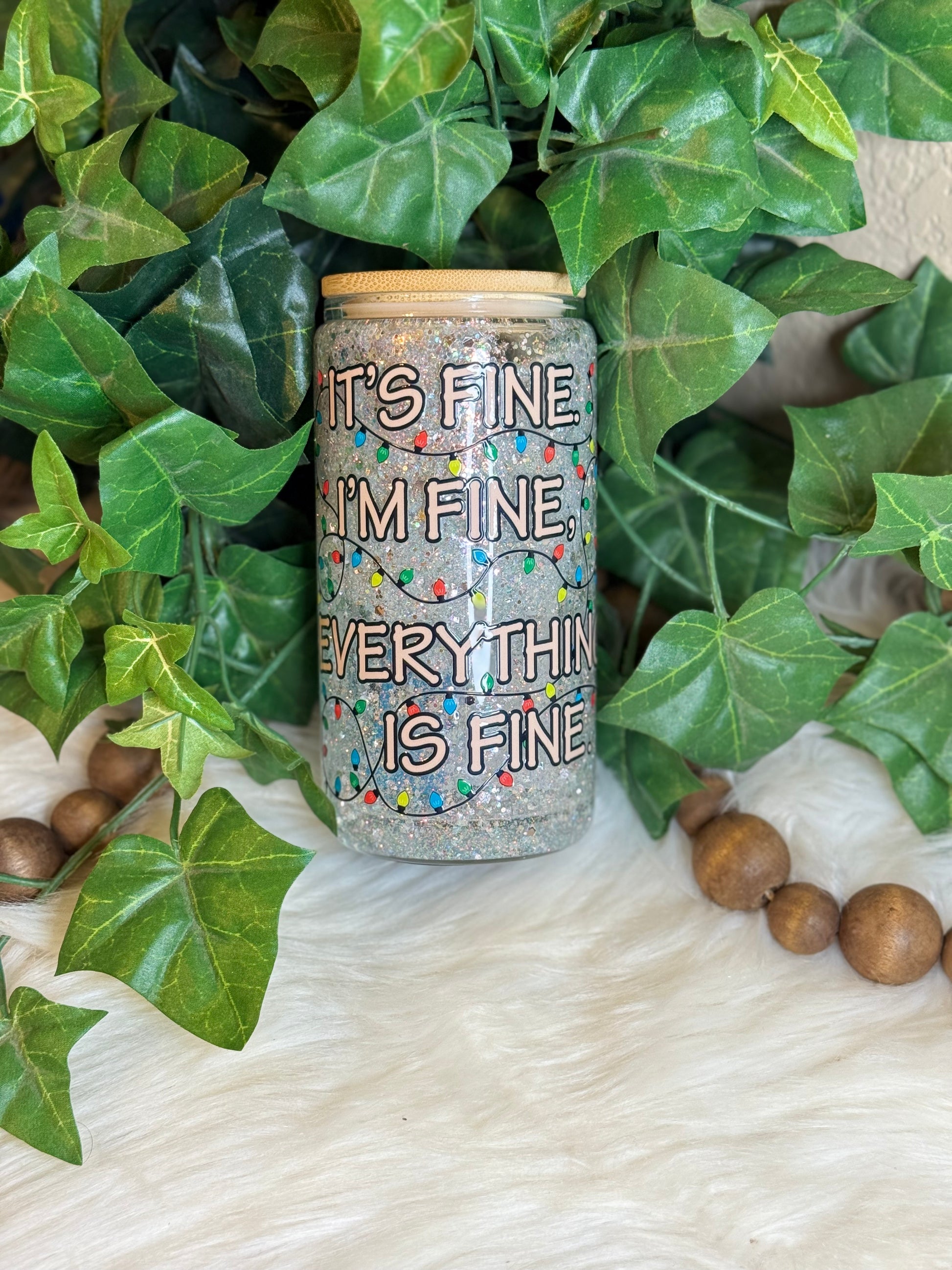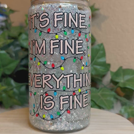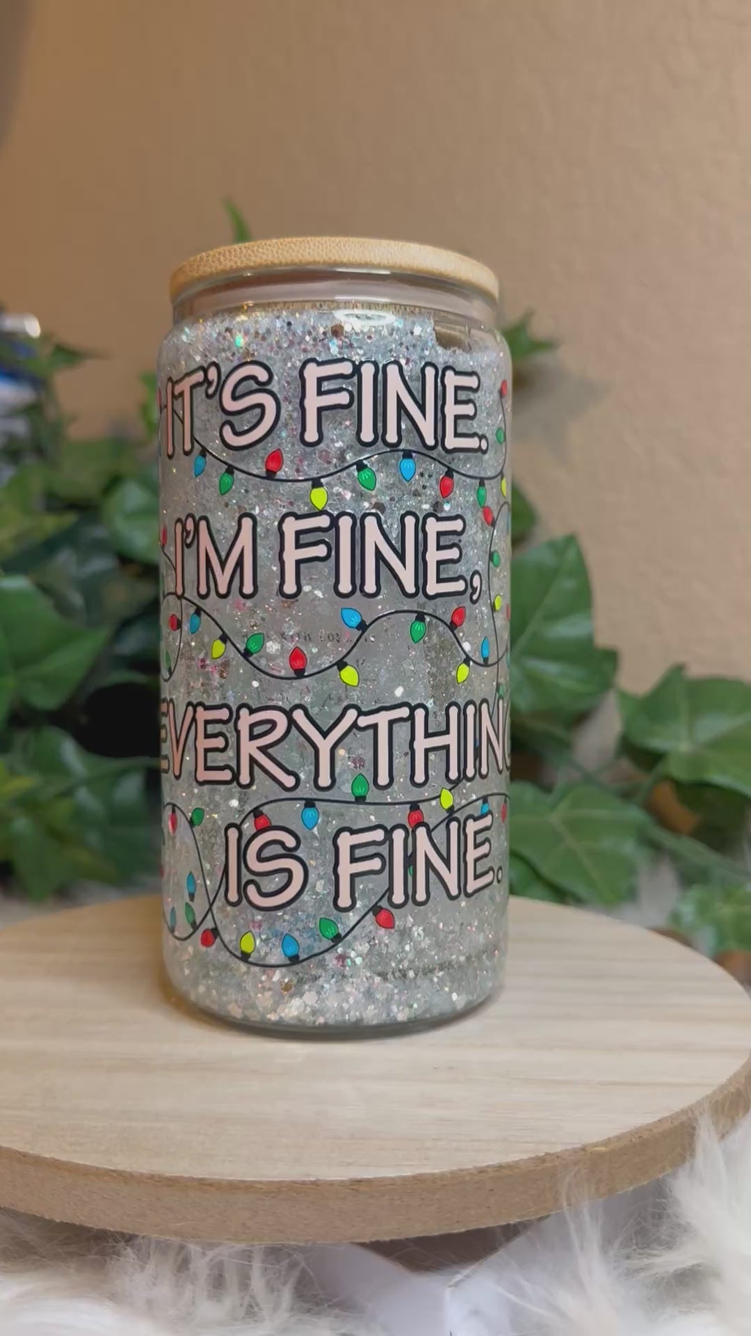 16 oz Double Wall Glass Can Snow Globe. Usable cup comes with hard plastic straw. Give it a shake to see the glitter move.