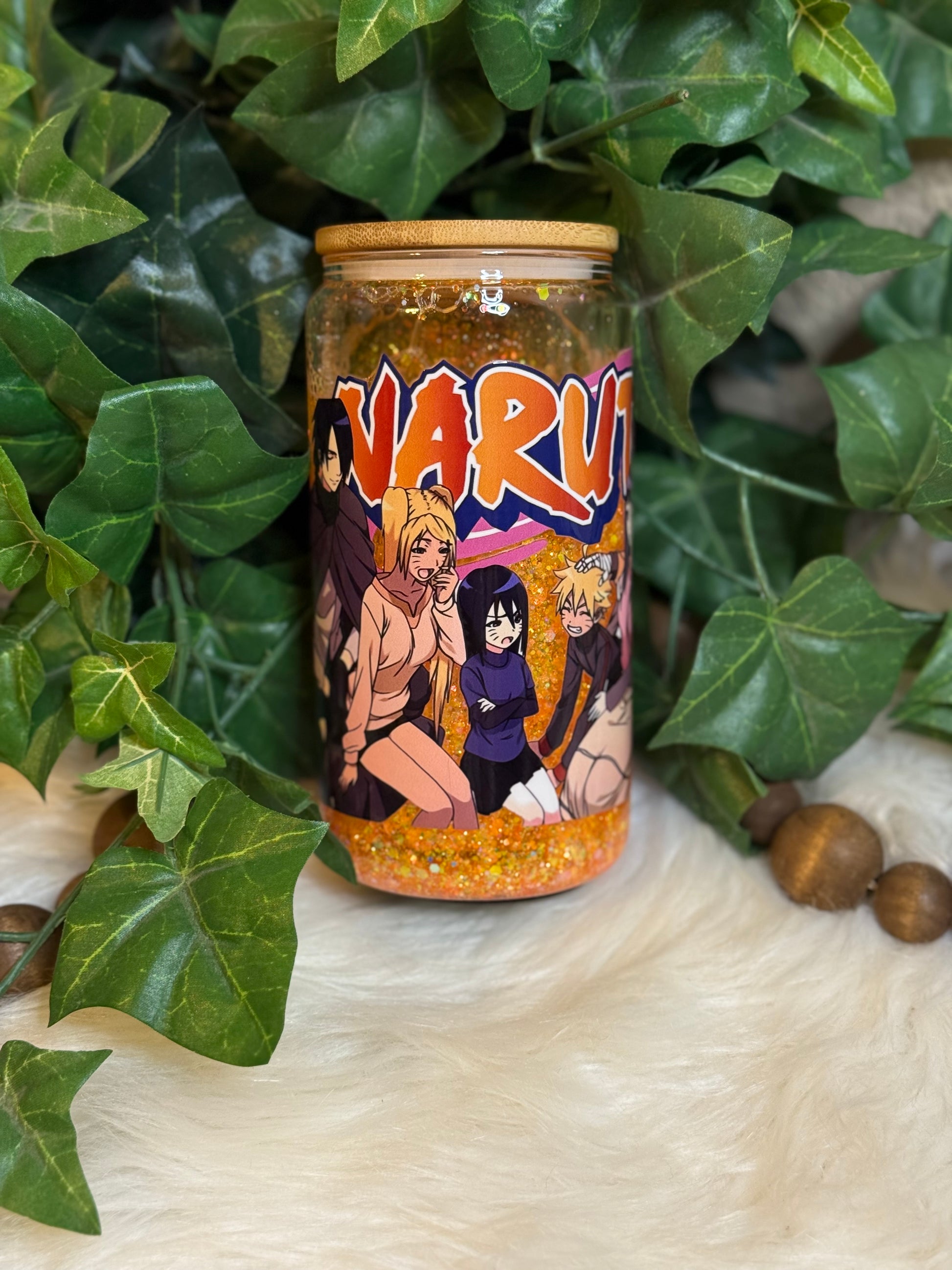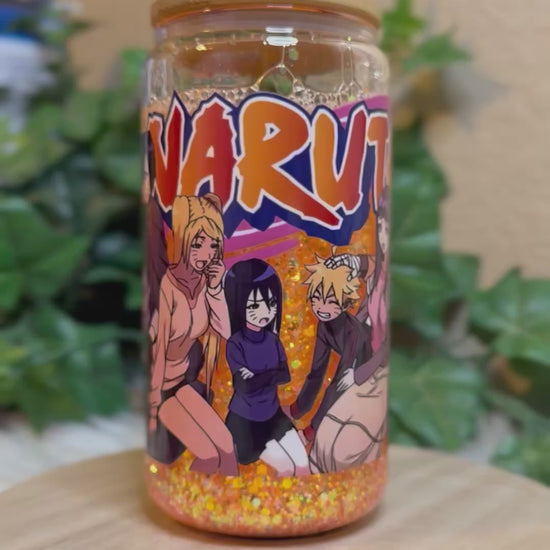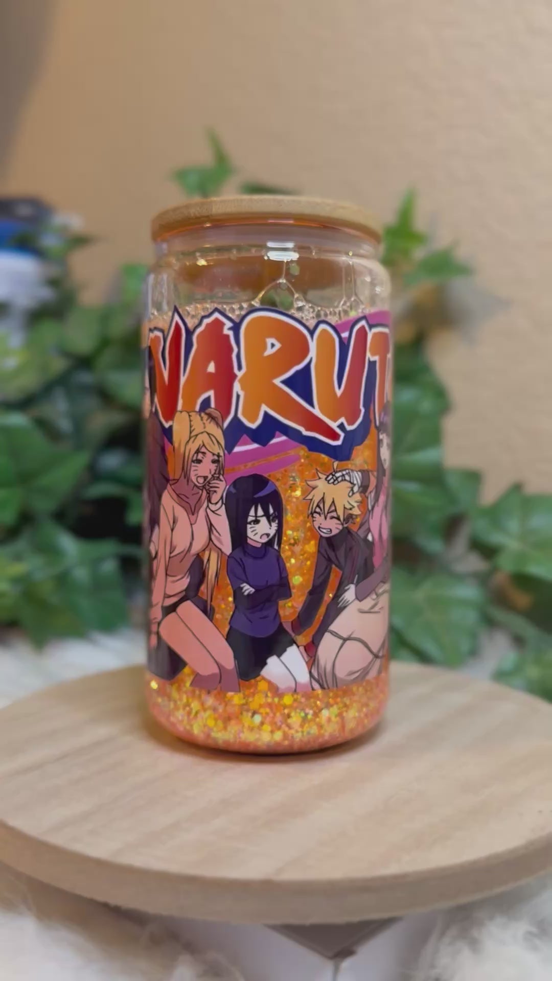 16 oz Double Wall Glass Can Snow Globe. Usable cup comes with hard plastic straw. Give it a shake to see the glitter move.