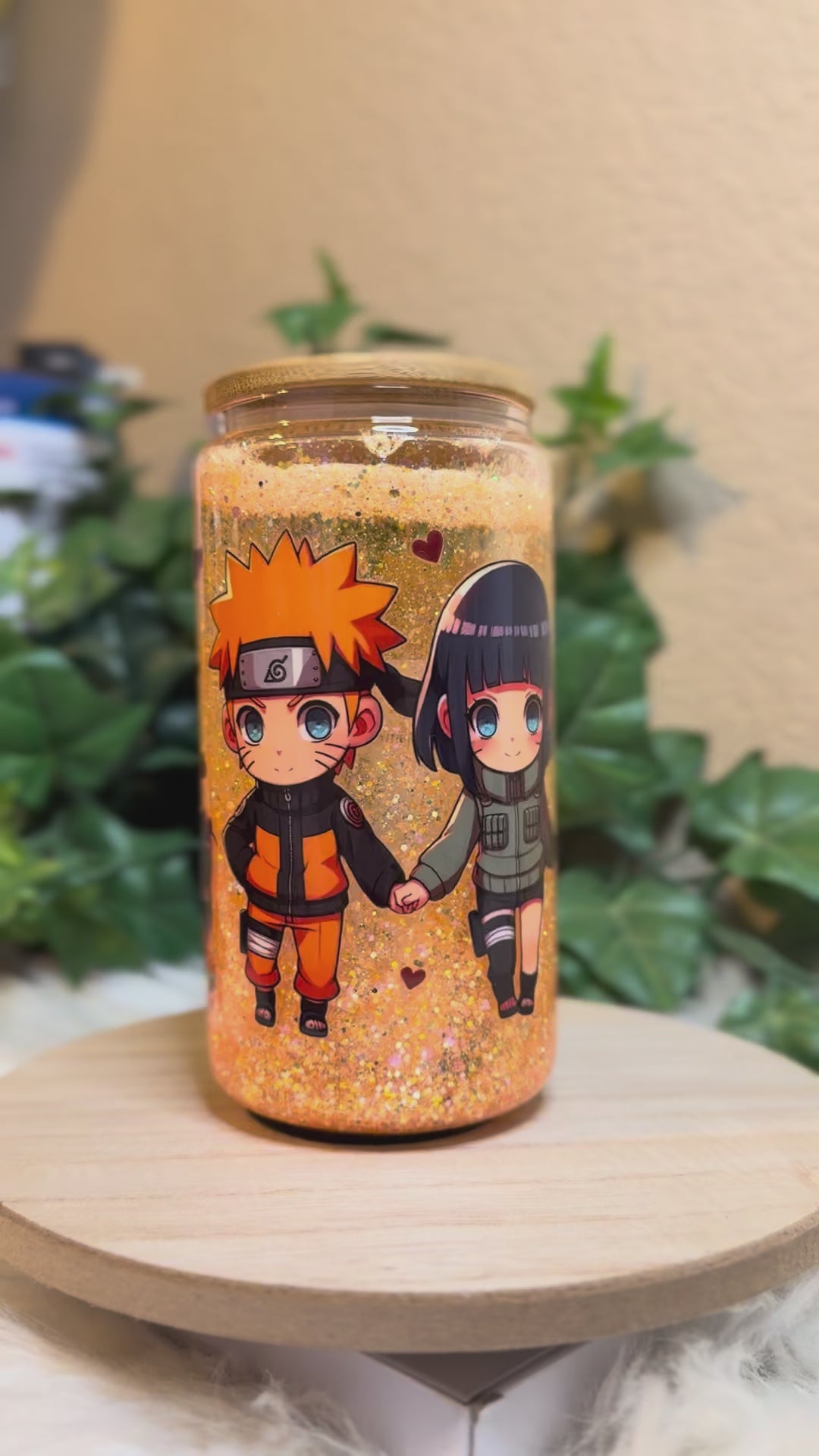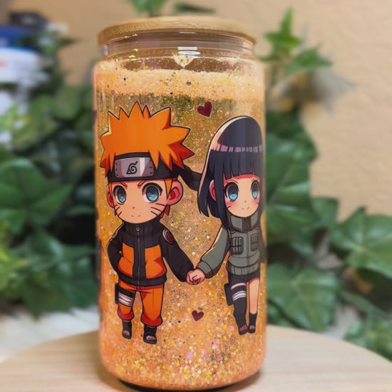 16 oz Double Wall Glass Can Snow Globe. Usable cup comes with hard plastic straw. Give it a shake to see the glitter move.