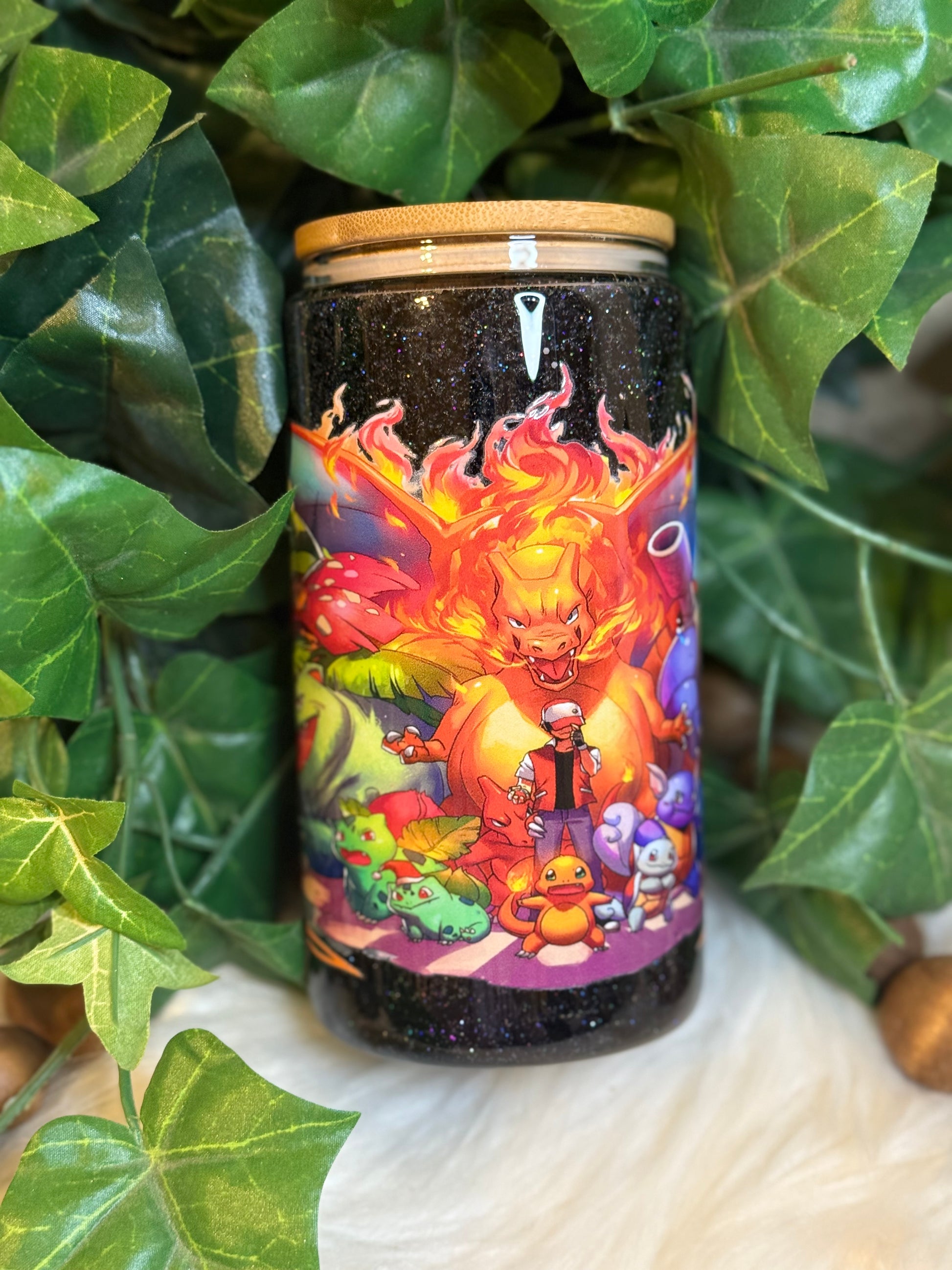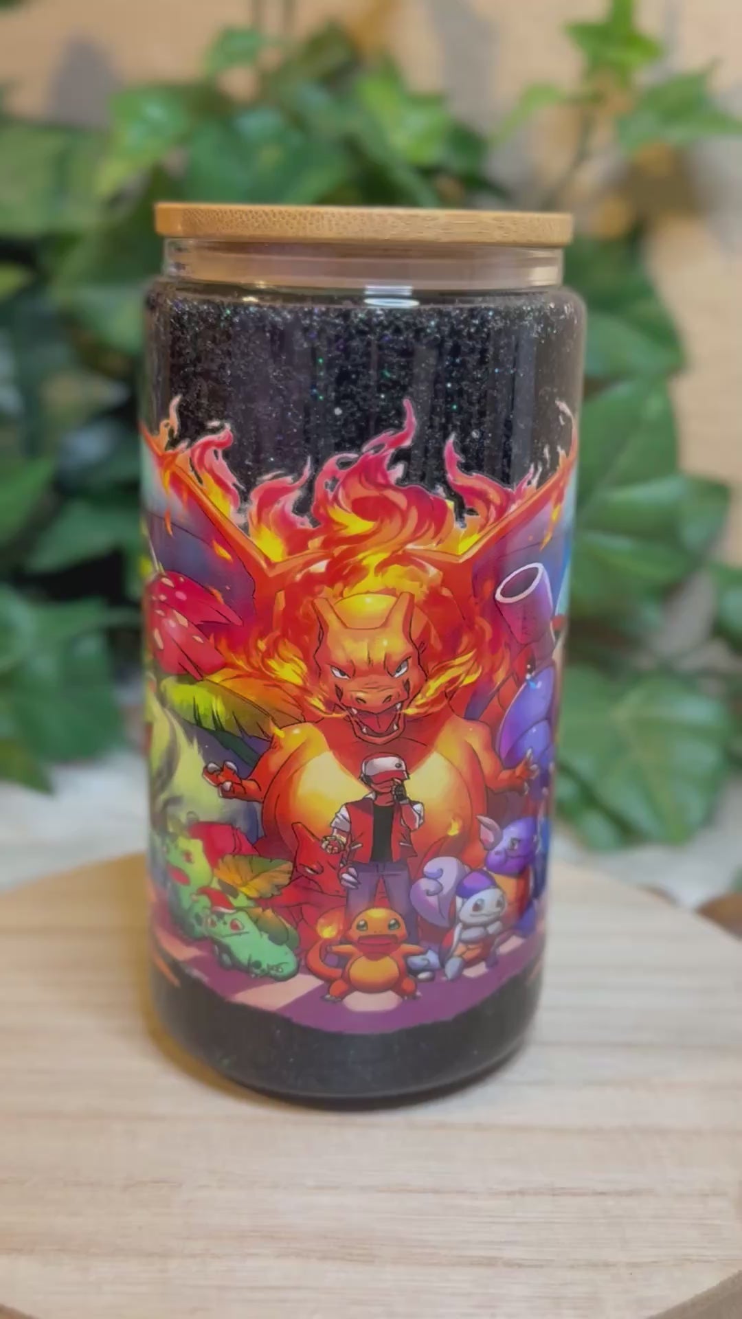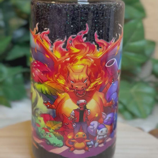 16 oz Double Wall Glass Can Snow Globe. Usable cup comes with hard plastic straw. Give it a shake to see the glitter move.